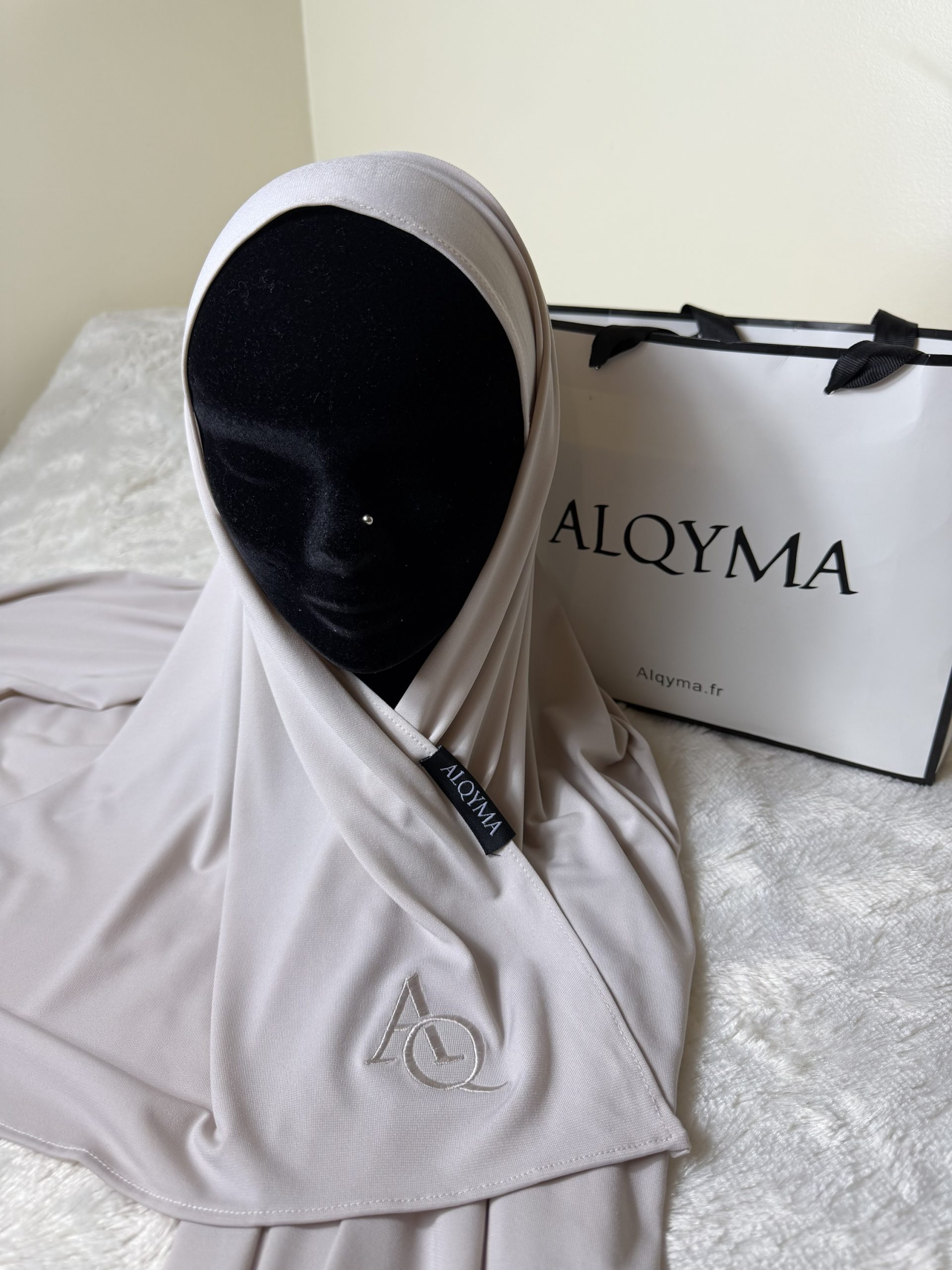 Se distingue par une broderie délicate de notre logo, discrète mais raffinée, ajoutant cette touche subtile qui fait la différence. Un détail travaillé avec précision, qui souligne la qualité et l’élégance du voile sans en faire trop.